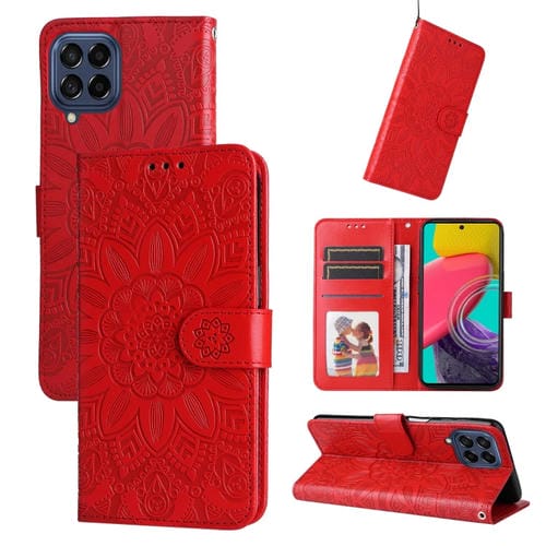 Estuche para Teléfono Samsung Galaxy M53 5G Cuero Estampado Girasol En Relieve (Rojo)