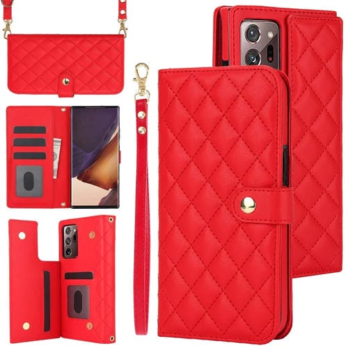Estuche para Teléfono Samsung Galaxy Note20 Ultra Crossbody de Cuero Rómbico Multifunción (Rojo)