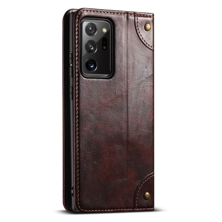 Funda para Teléfono Suteni Samsung Galaxy Note20 Ultra Cuero con Hebilla y Textura de Becerro (Marrón)