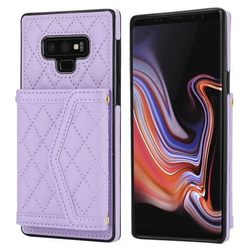 Estuche para Teléfono Samsung Galaxy Note9 con Bolsa para Tarjetas Textura Rómbica y Cordón Largo (Púrpura)
