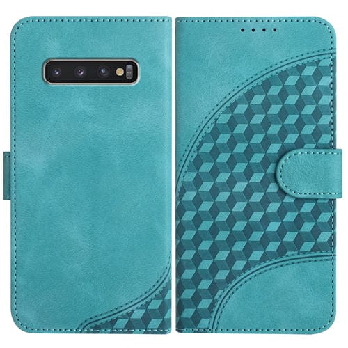 Funda de Cuero Samsung Galaxy S10 + Yx0060 con Relieve de Cabeza de Elefante y Cordón (Azul Claro)