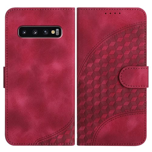 Funda para Teléfono Samsung Galaxy S10 Yx0060 Cuero Relieve Cabeza de Elefante con Cordón (Rojo Rosa)