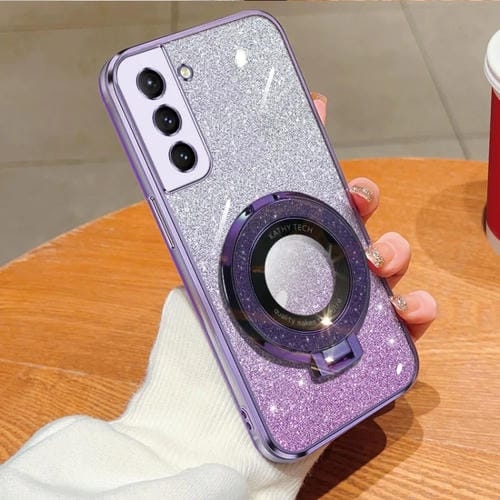 Estuche para Teléfono Samsung Galaxy S21 5G TPU con Soporte Redondo y Brillo Degradado (Púrpura)