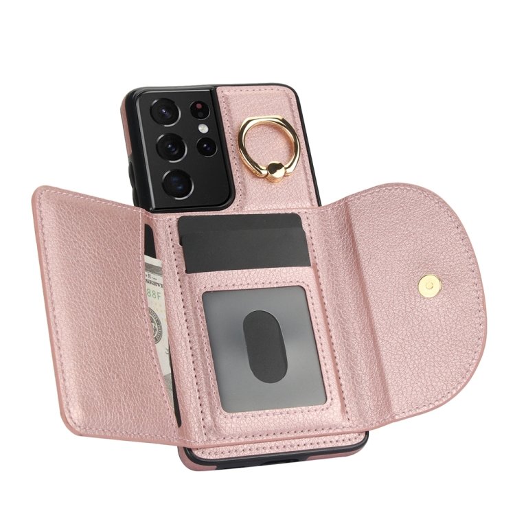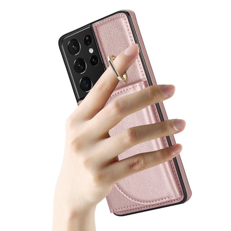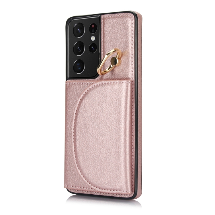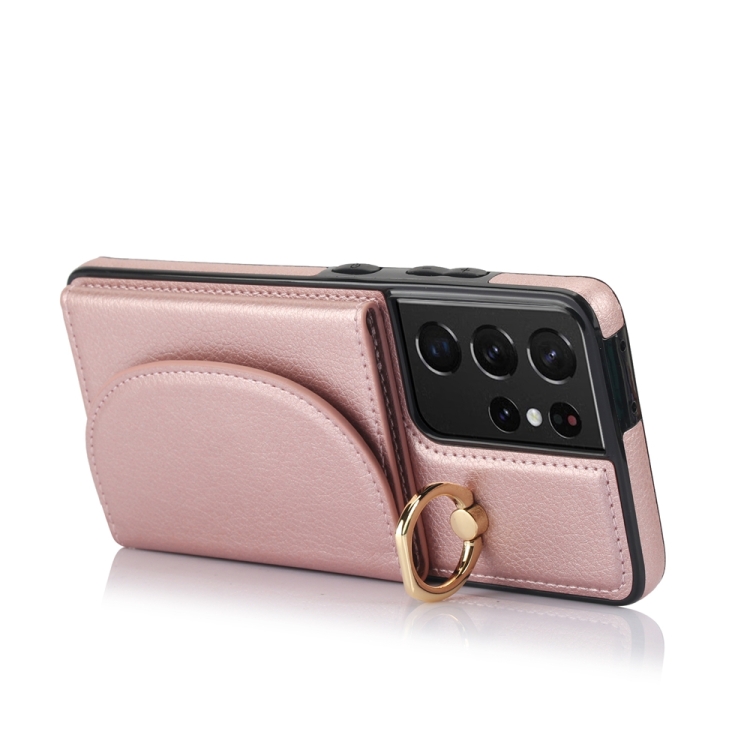 Funda para Teléfono Samsung Galaxy S21 Ultra 5G Ym007 con Soporte para Anillo y Tarjeta (Oro Rosa)