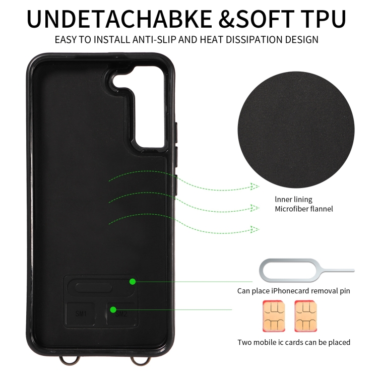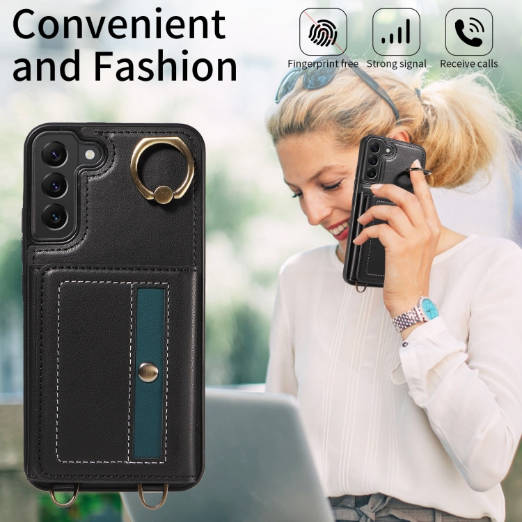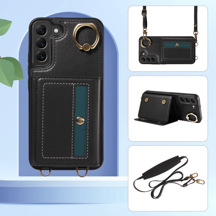 Funda para Samsung Galaxy S22+ 5G Crossbody Wallet Bag Ring Holder de Cuero (Negro)