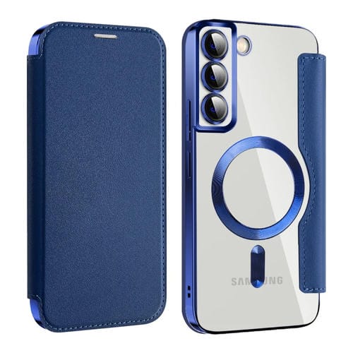 Funda para Samsung Galaxy S22 5G Magsafe Magnetic Rfid Cuero Antirrobo (Azul Oscuro)