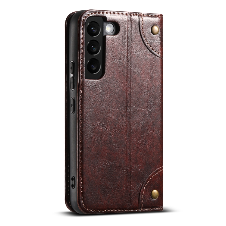Funda para Samsung Galaxy S22+ 5G Suteni Cuero Textura Becerro Barroca con Hebilla (Marrón)