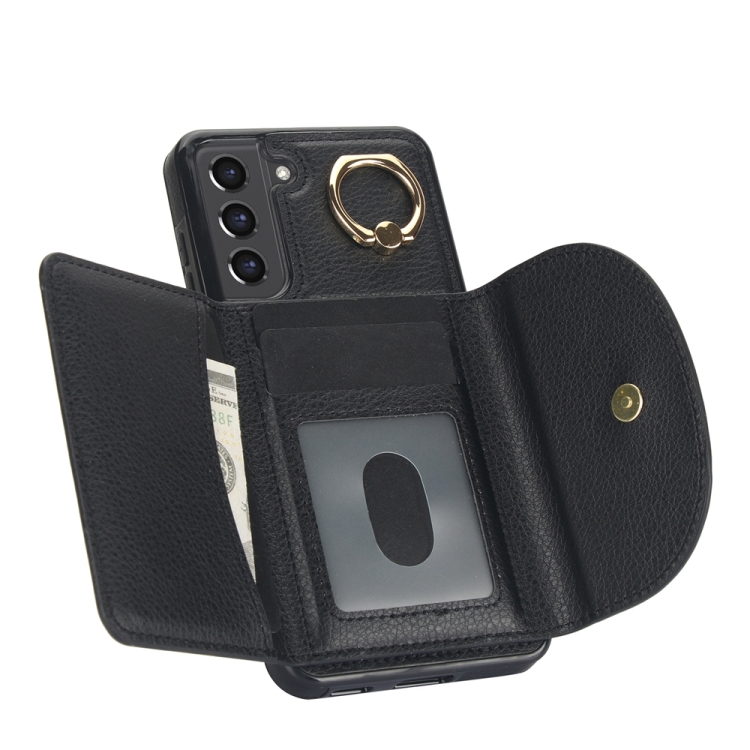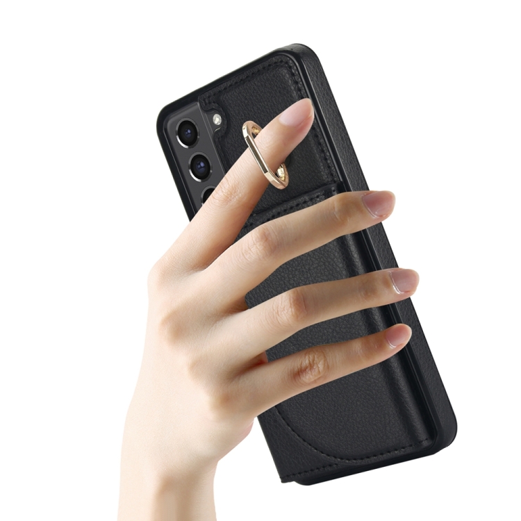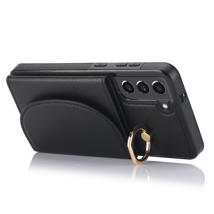 Estuche para Teléfono Samsung Galaxy S22 + 5G Ym007 con Soporte para Anillo y Tarjeta (Negro)