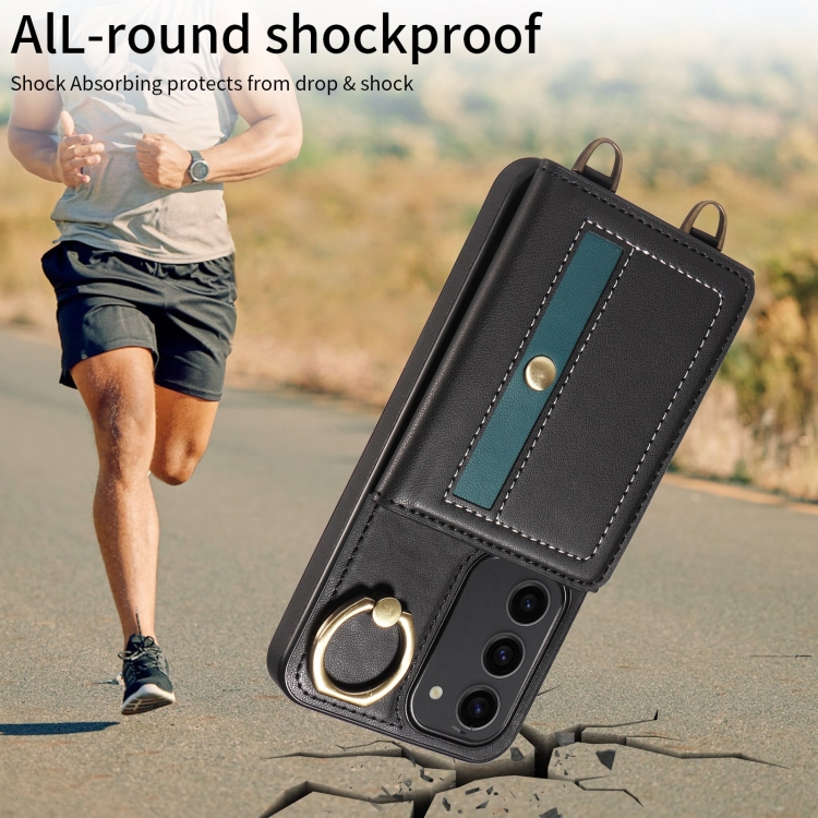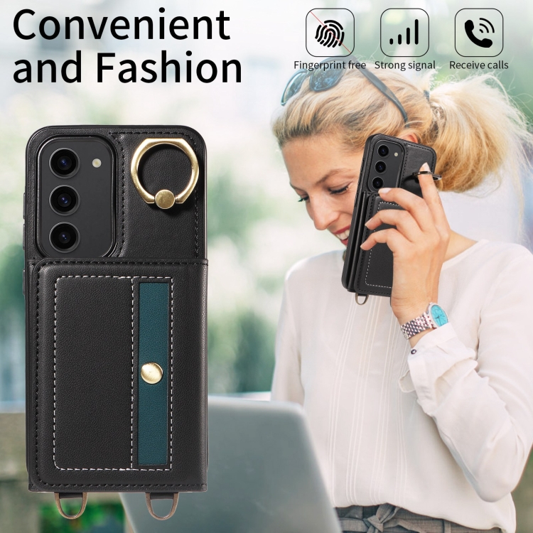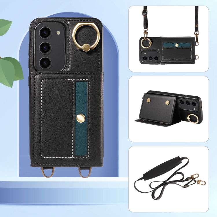 Funda para Samsung Galaxy S23 5G Crossbodys Wallet Bag con Ring Holder de Cuero (Negro)