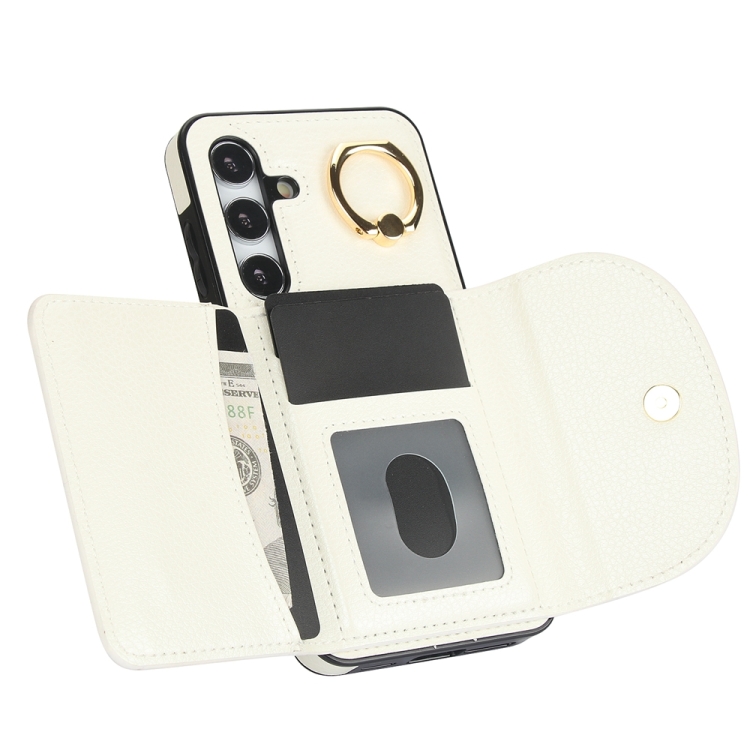 Funda para Teléfono Samsung Galaxy S24 5G Ym007 con Soporte para Anillo y Tarjeta (Blanco)
