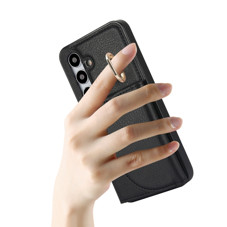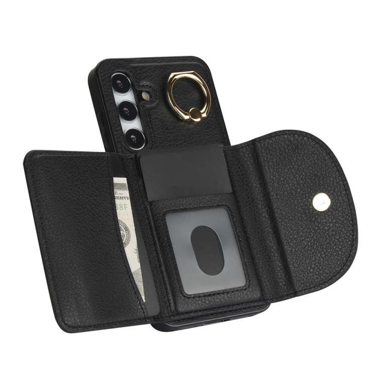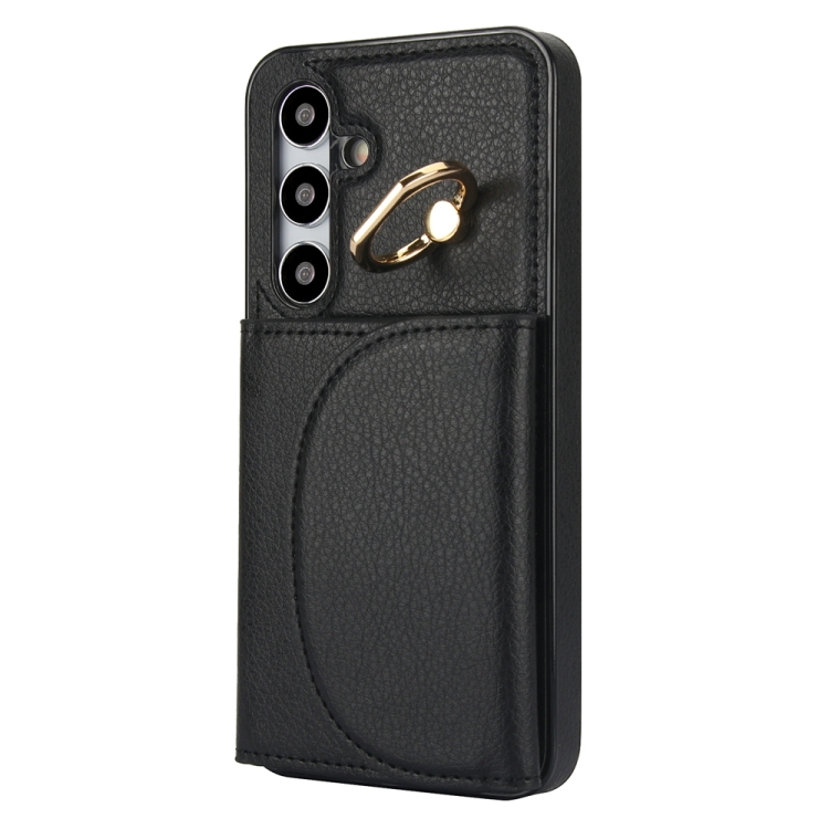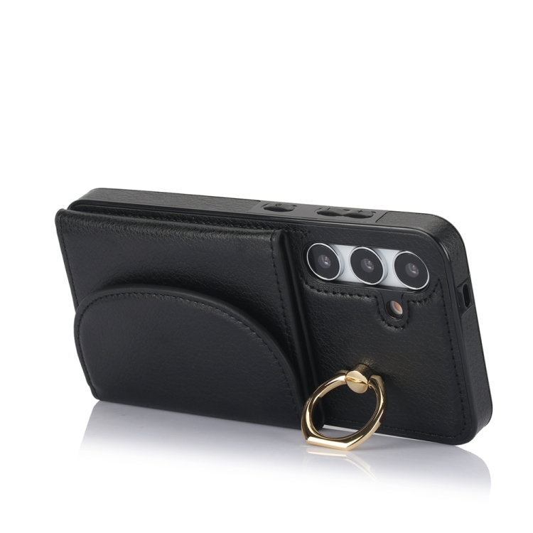 Funda para Teléfono Samsung Galaxy S24 5G Ym007 con Soporte para Anillo y Tarjeta (Negro)