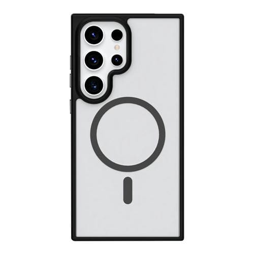 Estuche para teléfono Samsung Galaxy S24 Ultra 5G botón de metal sensación de piel Magsafe mate a prueba de golpes (Negro)