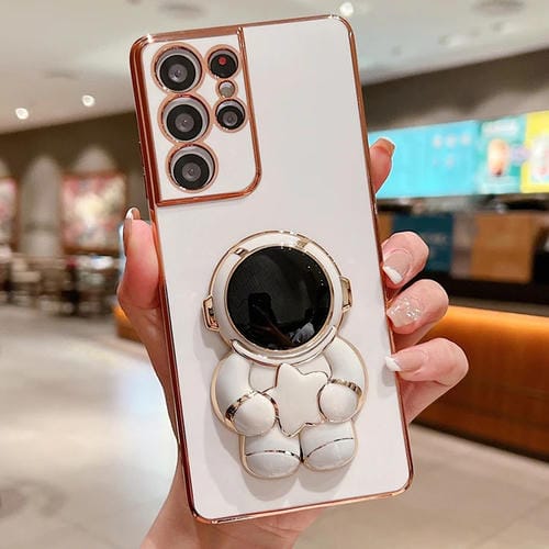 Estuche para Teléfono Samsung Galaxy S24 Ultra 5G Embrace Stars con Soporte Astronauta Galvanizado (Blanco)