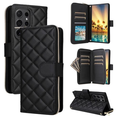 Funda Cruzada de Cuero Samsung Galaxy S24 Ultra 5G con Hebilla y Cremallera (Negro)