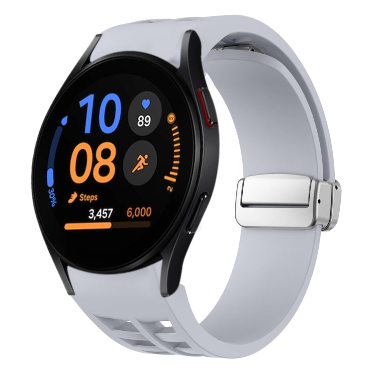 Correa de Silicona para Samsung Galaxy Watch FE 40mm Richard con Hebilla Plateada Plegable Magnética (Gris Claro)