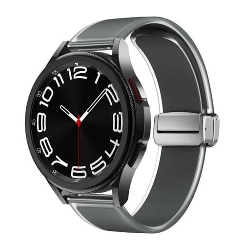 Correa de silicona para Samsung Galaxy Watch6/5/4 con hebilla plateada magnética translúcida (Gris Espacial)