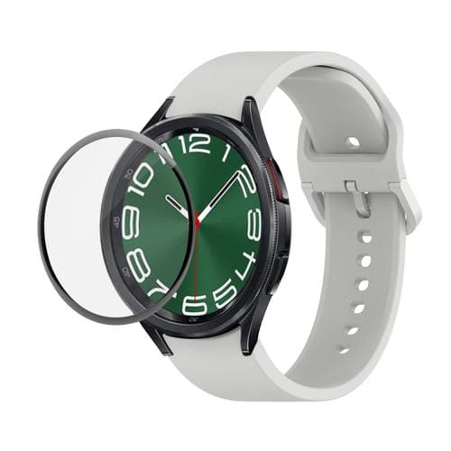 Correa Ajustable de Silicona + Kit Protector de Pantalla Pmma para Samsung Galaxy Watch6 Classic 47mm (Gris)