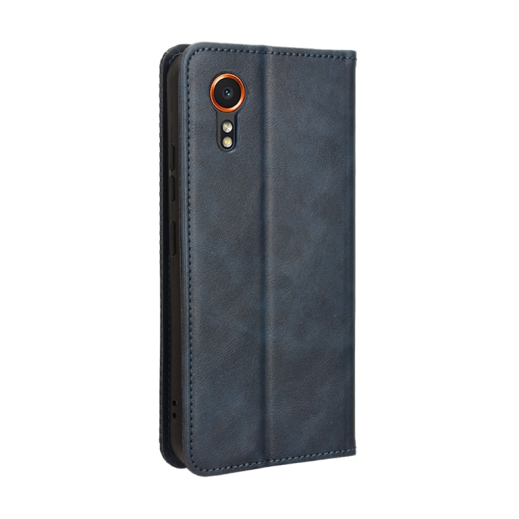 Funda para Teléfono Samsung Galaxy Xcover 7 Cuero Textura Retro Hebilla Magnética (Azul)
