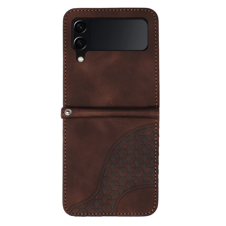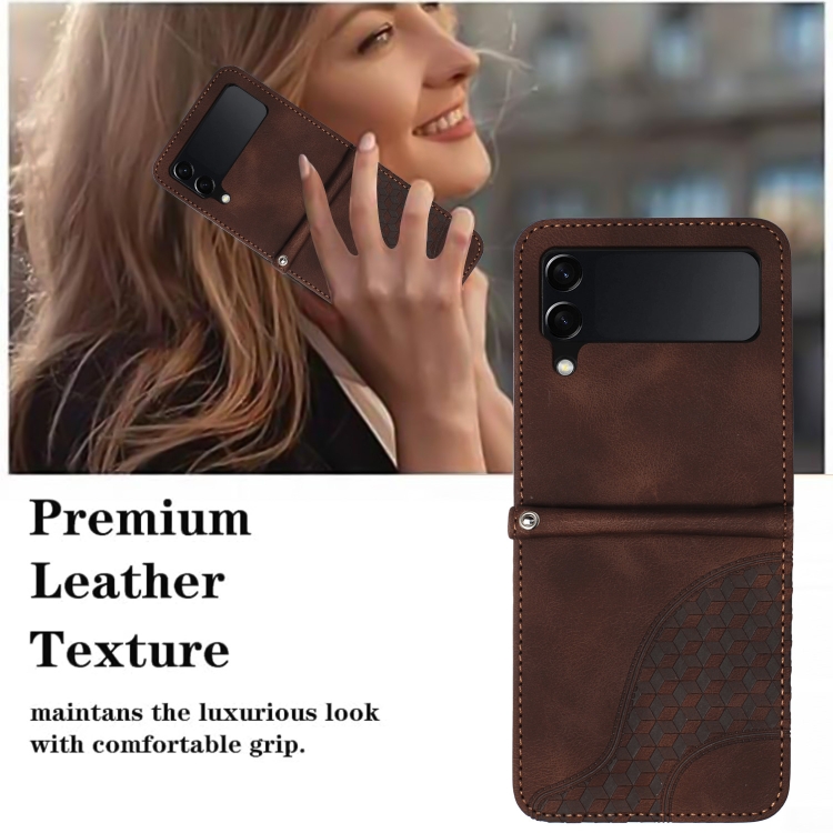 Funda para Samsung Galaxy Z Flip3 5G Yx0060 Cuero Relieve Cabeza de Elefante con Cordón (Café)