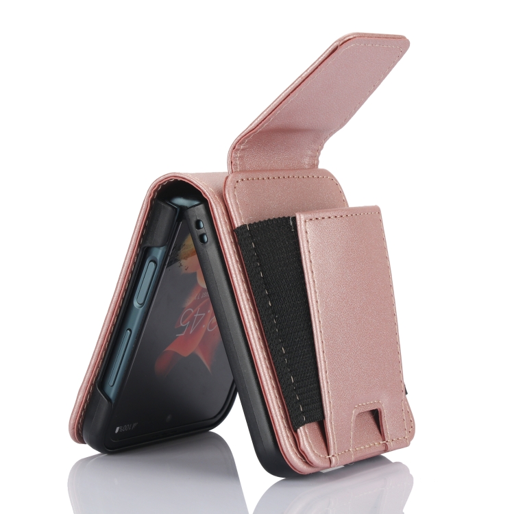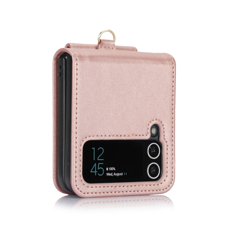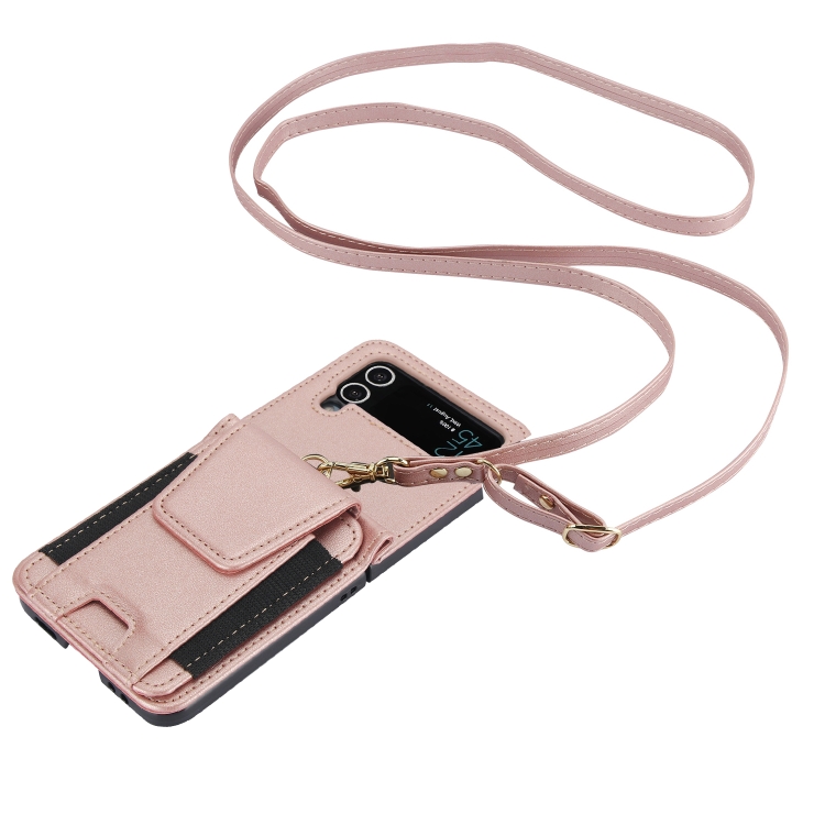 Estuche plegable Samsung Galaxy Z Flip3 con ranuras para tarjetas y cordón largo (Oro Rosa)