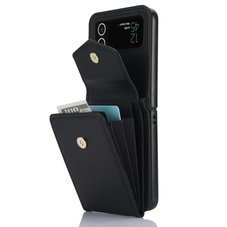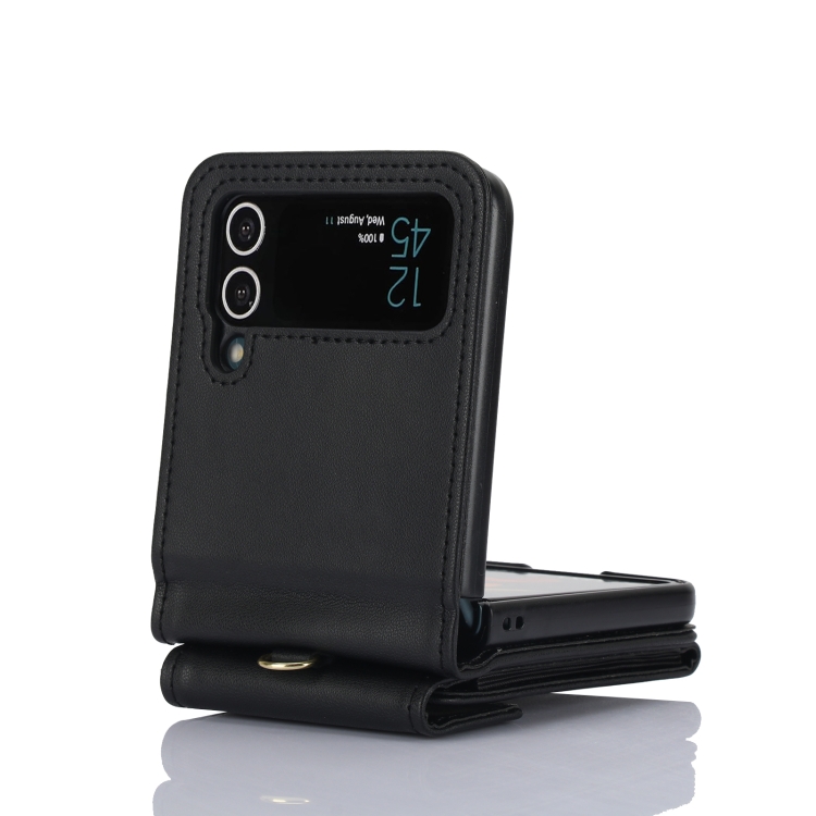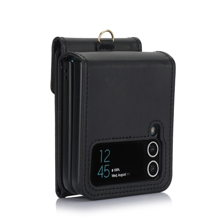 Funda plegable para teléfono Samsung Galaxy Z Flip3 con RFID, ranuras para tarjetas y cordón largo (Negro)