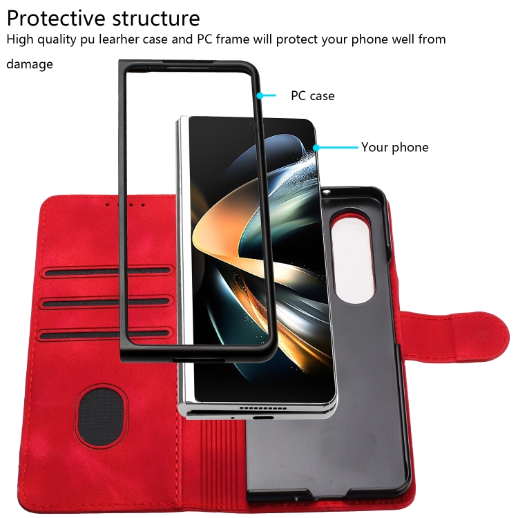 Funda para Samsung Galaxy Z Fold5 5G Yx0060 Cuero Relieve Cabeza de Elefante con Cordón (Rojo)