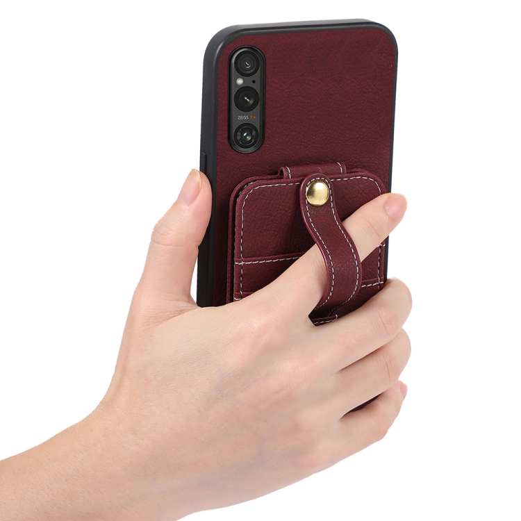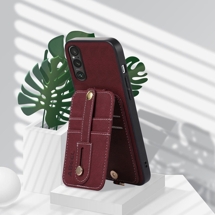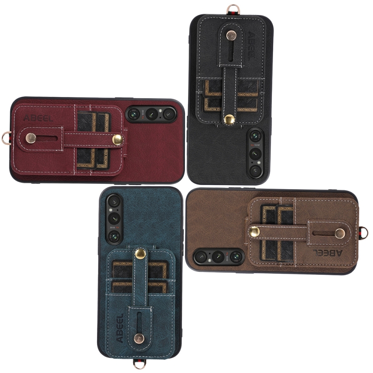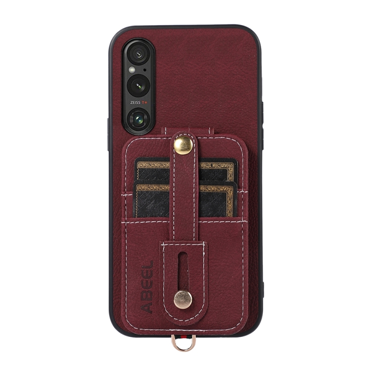 Funda para Sony Xperia 1 V Abeel Litchi Texture con Tarjetero PU (Púrpura)
