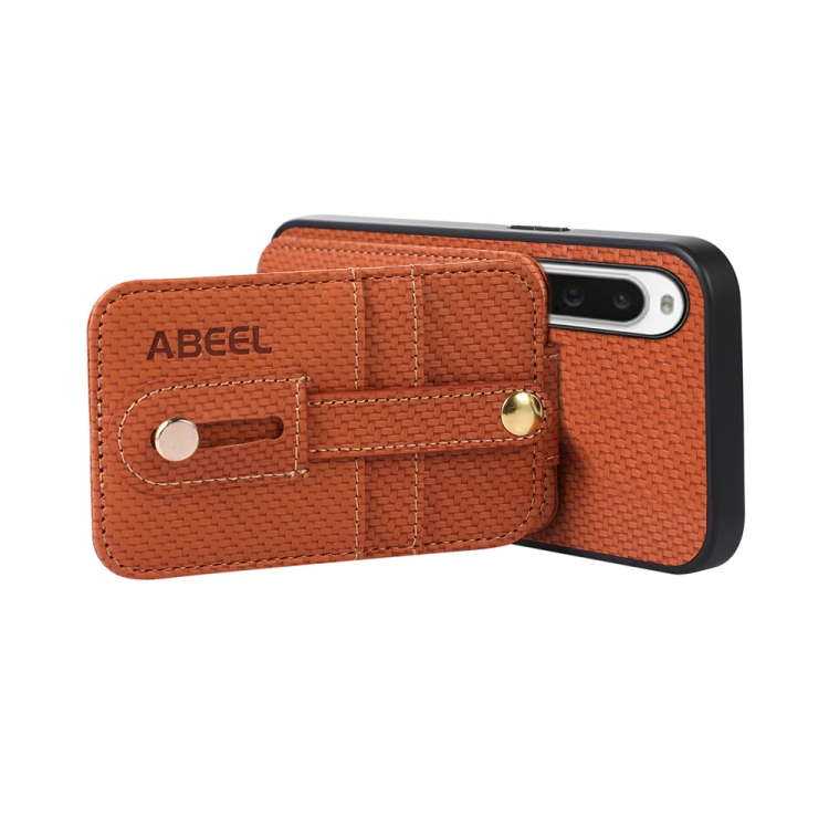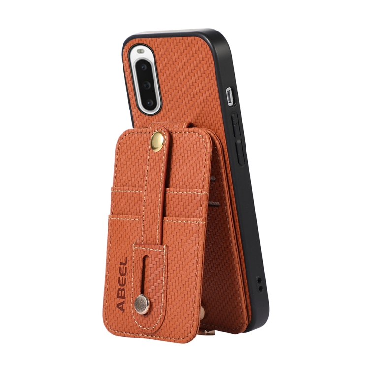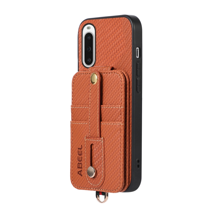 Funda para Sony Xperia 10 V Abeel con Tarjetero RFID Fibra de Carbono (Marrón)