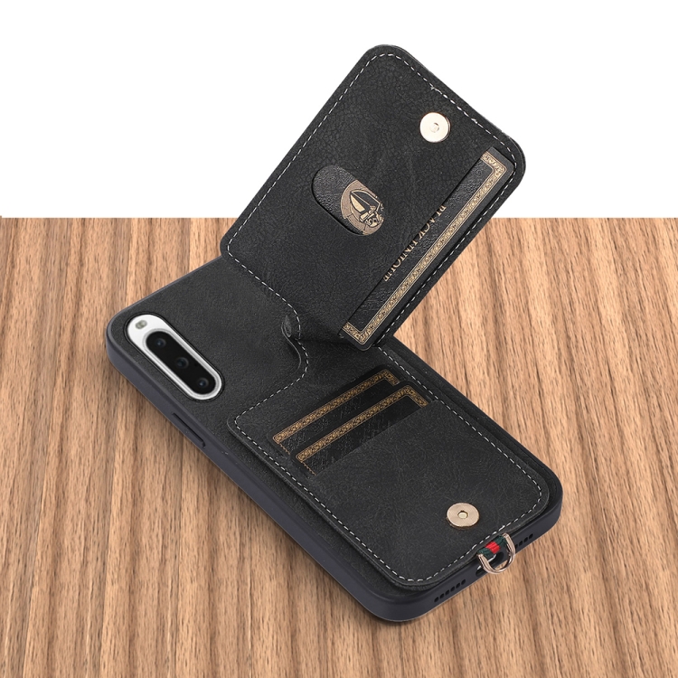 Funda para Sony Xperia 10 V Abeel Textura Litchi con Tarjetero PU (Negro)
