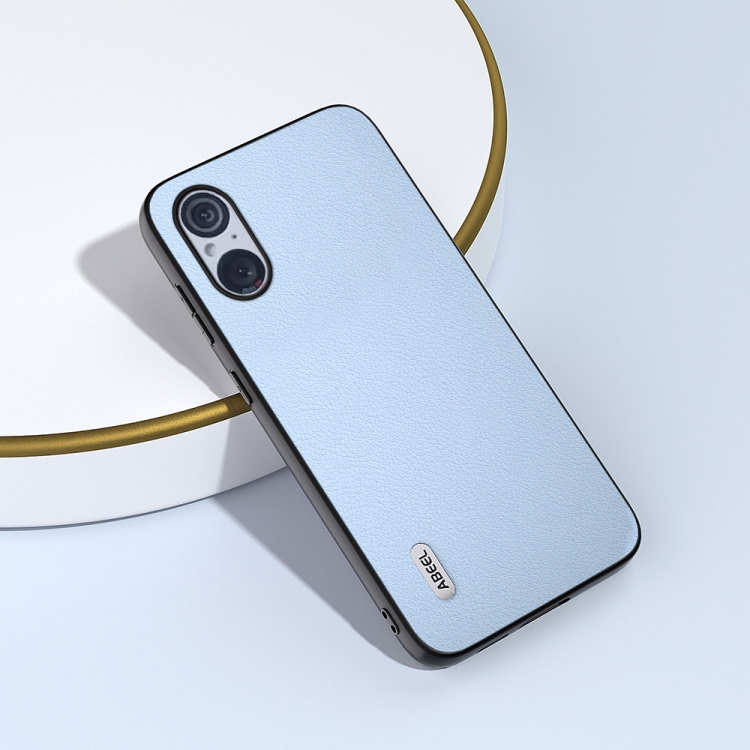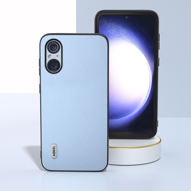 Funda para Sony Xperia 5 V Abeel con Borde Negro Ondulado de Cuero Genuino (Azul)