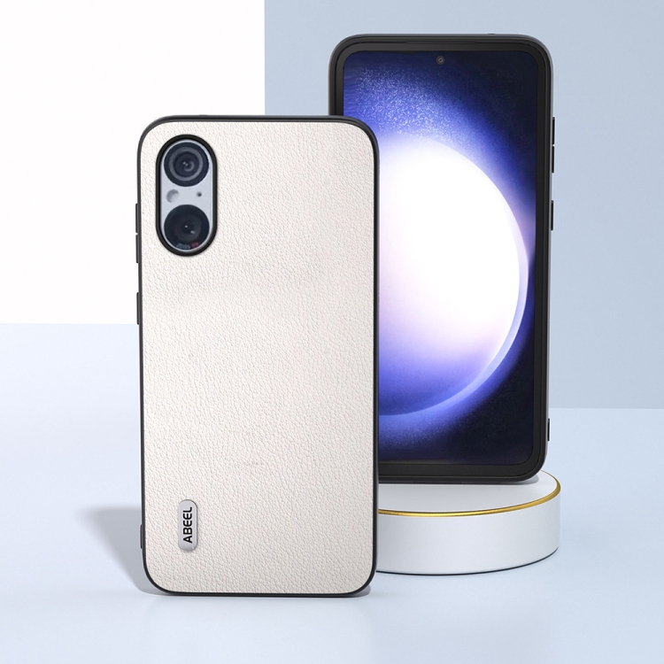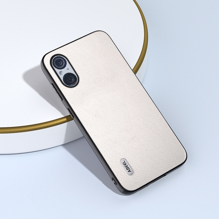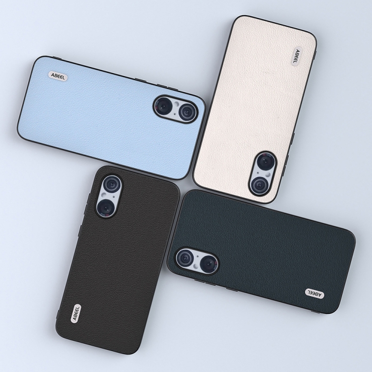 Funda para Sony Xperia 5 V Abeel con Borde Negro Ondulado de Cuero Genuino (Gris)