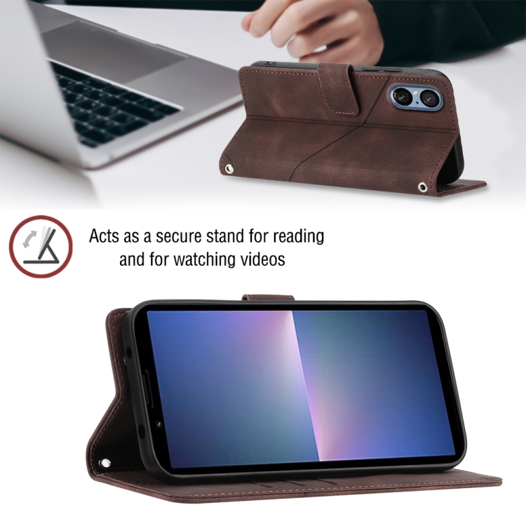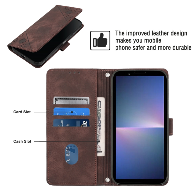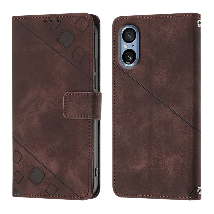 Funda de Cuero para Sony Xperia 5 V con Relieve y Sensación de Piel (Marrón)