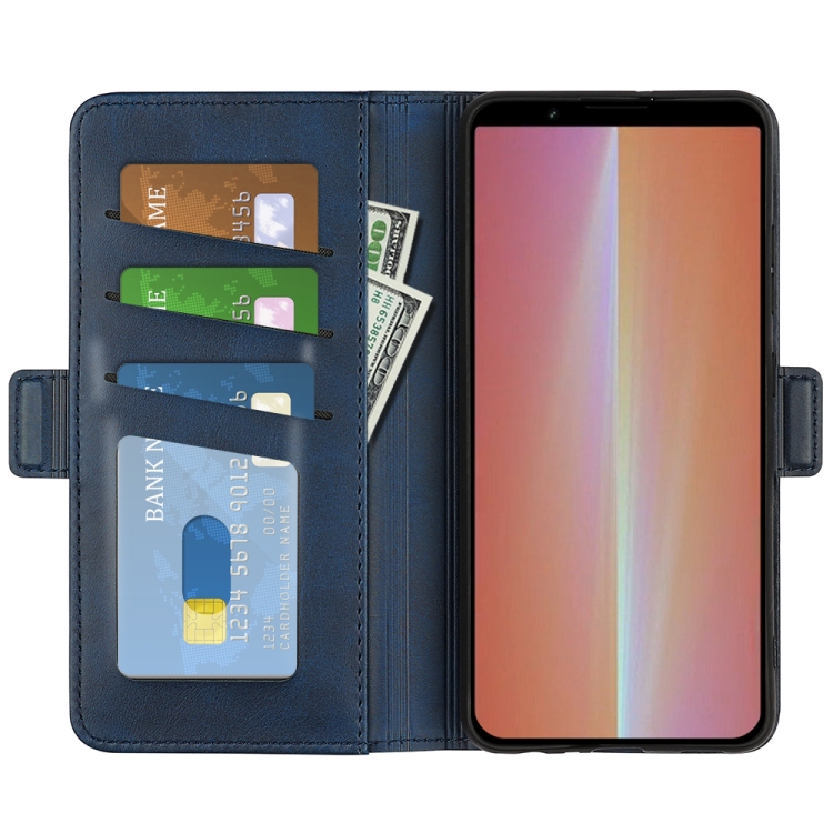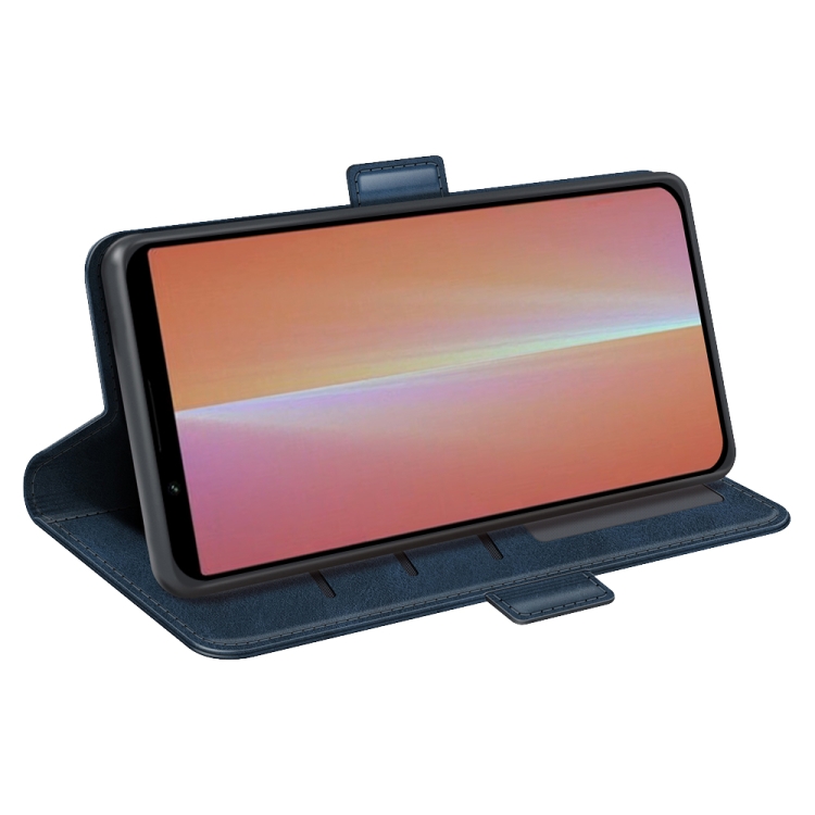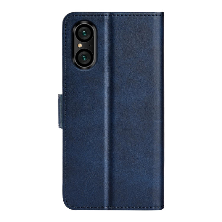 Funda de Cuero para Sony Xperia 5 V con Tapa Horizontal y Hebilla Magnética Doble Lado (Azul Oscuro)