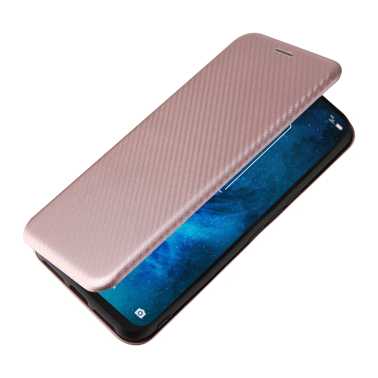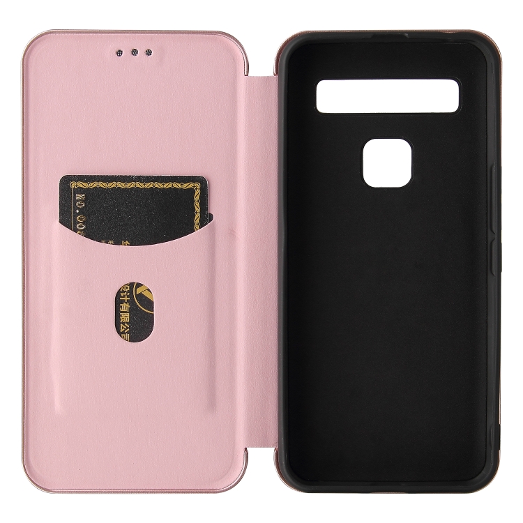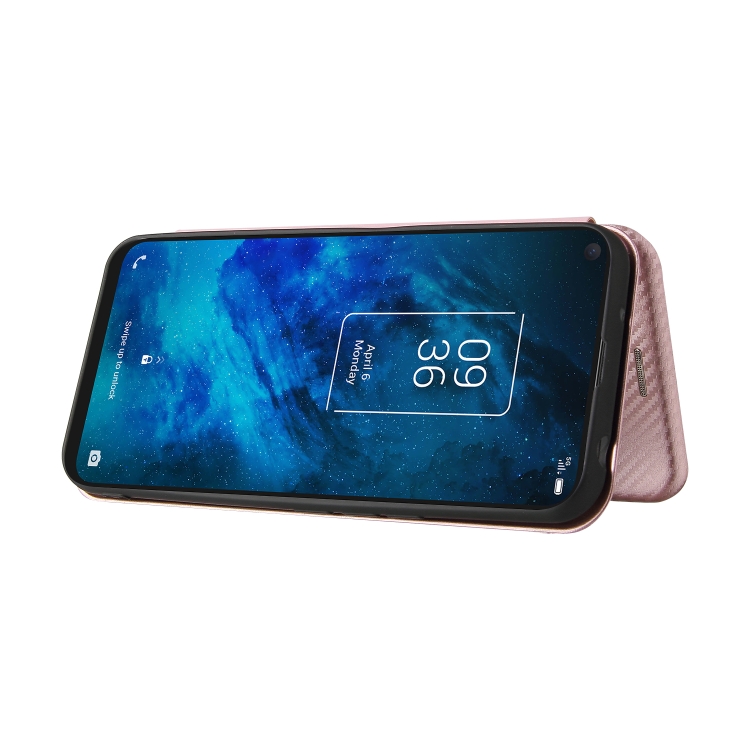 Funda para TCL 10 5G Uw (Versión Estadounidense) Textura Fibra de Carbono Magnético Flip TPU PC Cuero Pu Rosa