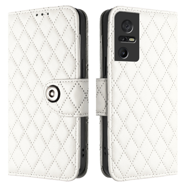 Funda para TCL 40 Se de Cuero con Tapa, Textura Rómbica y Cordón (Blanco)