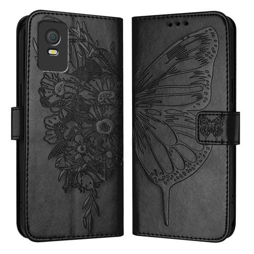 Funda de Cuero para TCL 403 con Mariposa en Relieve (Negro)