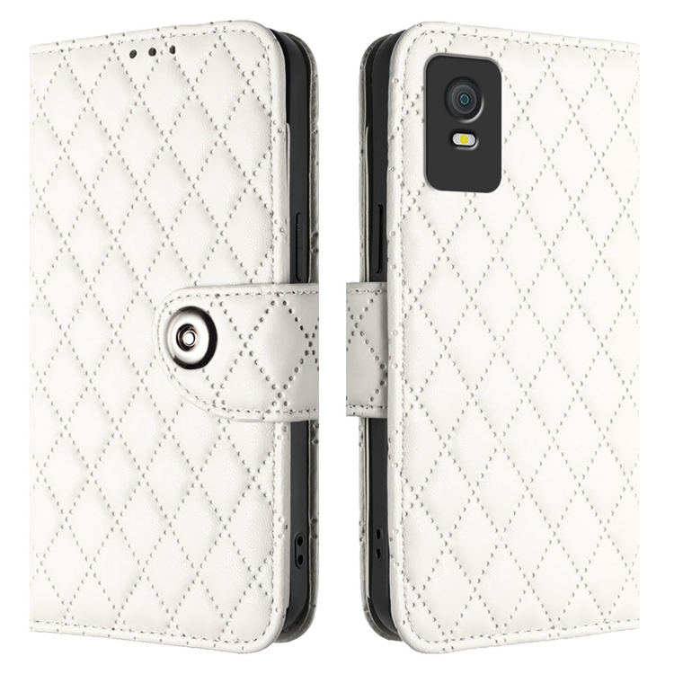 Funda para Teléfono TCL 403 Cuero con Tapa Textura Rómbica y Cordón (Blanco)