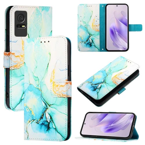 Funda de Cuero para TCL 405/406/408 Pt003 con Tapa y Patrón Mármol (Verde)