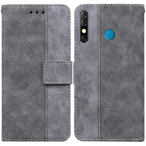 Funda de Cuero para Tecno Camon 12 y Spark 4 con Relieve Geométrico (Gris)