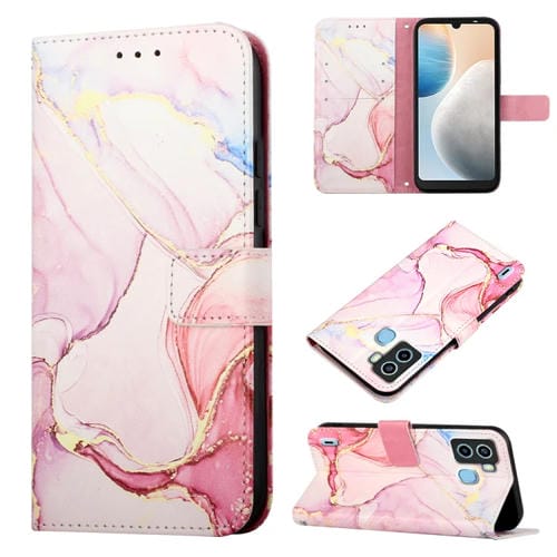 Funda de Cuero con Tapa para Tecno Pop 6 Pt003 Patrón Mármol (Oro Rosa)