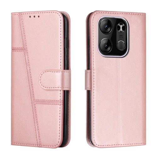 Funda de Cuero para Tecno Pop 7 Pro con Stitching y Hebilla (Oro Rosa)