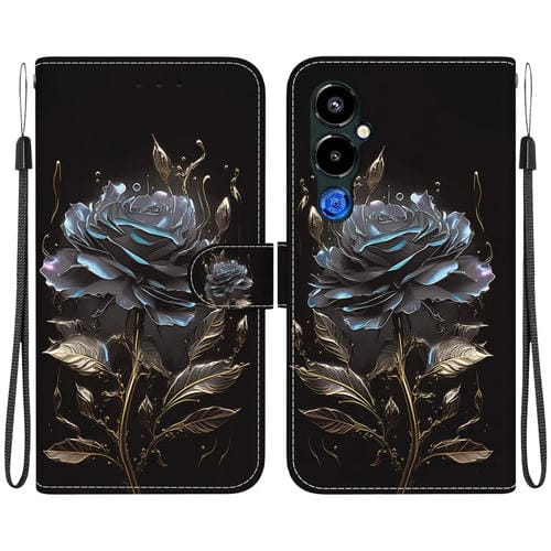 Funda de Cuero para Tecno Pova 4 Pro con Dibujo Coloreado y Textura de Cristal (Rosa Negra)
