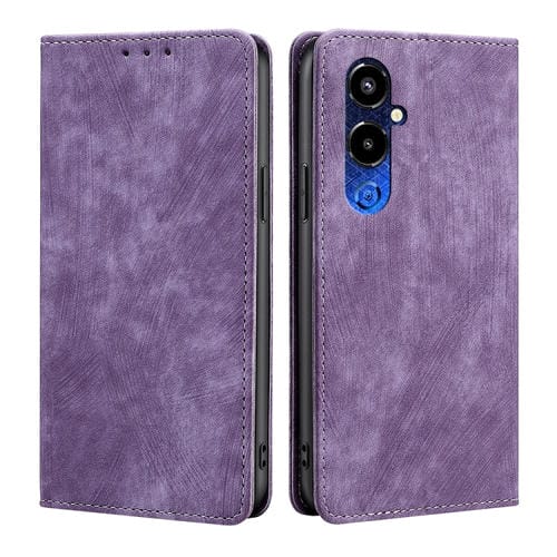 Funda de Cuero Magnética para Tecno Pova 4 Pro con RFID y Cepillo Antirrobo (Púrpura)