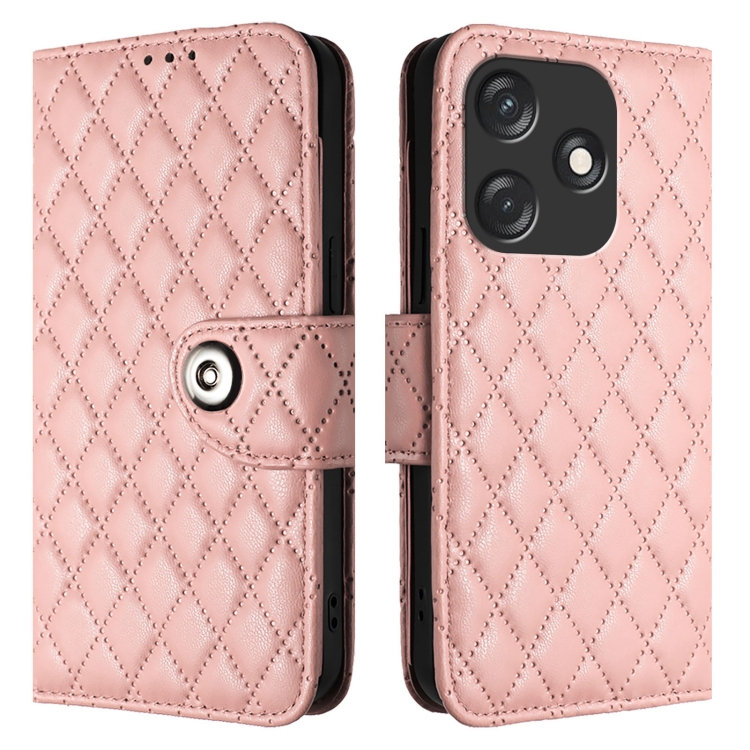 Funda de Cuero para Tecno Spark 10C con Tapa Textura Romboidal y Cordón (Rosa Coral)