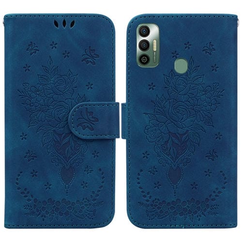 Funda para Tecno Spark 7 Butterfly Rose de Cuero Rossed (Azul)
