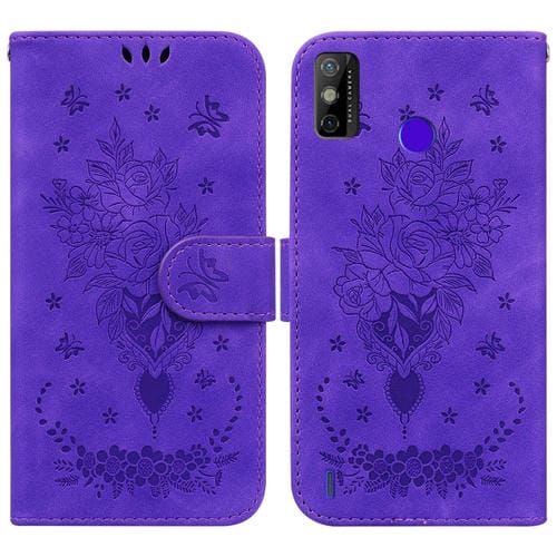 Funda para Tecno Spark Go 2022 / Spark 6 Go Butterfly Rose Foothip en Relieve de Cuero (Púrpura)