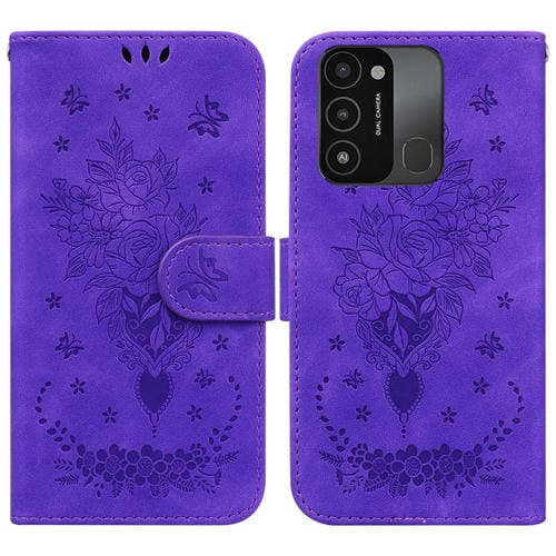 Funda para Tecno Spark Go 2022 y Spark 8C en Cuero con Relieve Butterfly Rose (Púrpura)