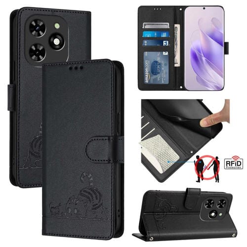 Funda para Tecno Spark Go 2024 de Cuero RFID con Patrón en Relieve y Cordón (Negro)
