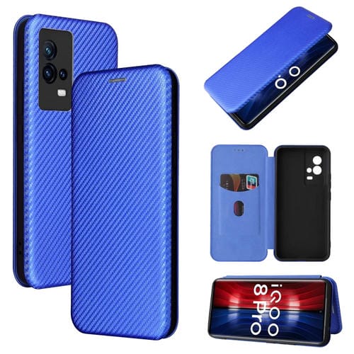Para Vivo Iqoo 8 Pro Carbon Fibre Texture Magnetic Horizontal Flip TPU + PC + Funda de Cuero Pu con Ranura para Tarjeta (Azul)