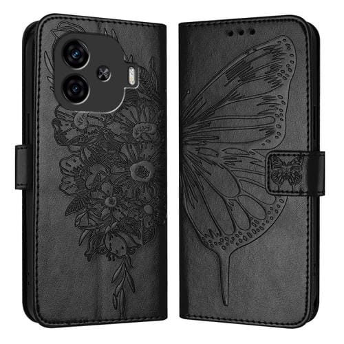 Para Vivo Iqoo Z9 / Iqoo Z9 Turbo 5G Funda para Teléfono de Cuero con Mariposa En Relieve (Negro)